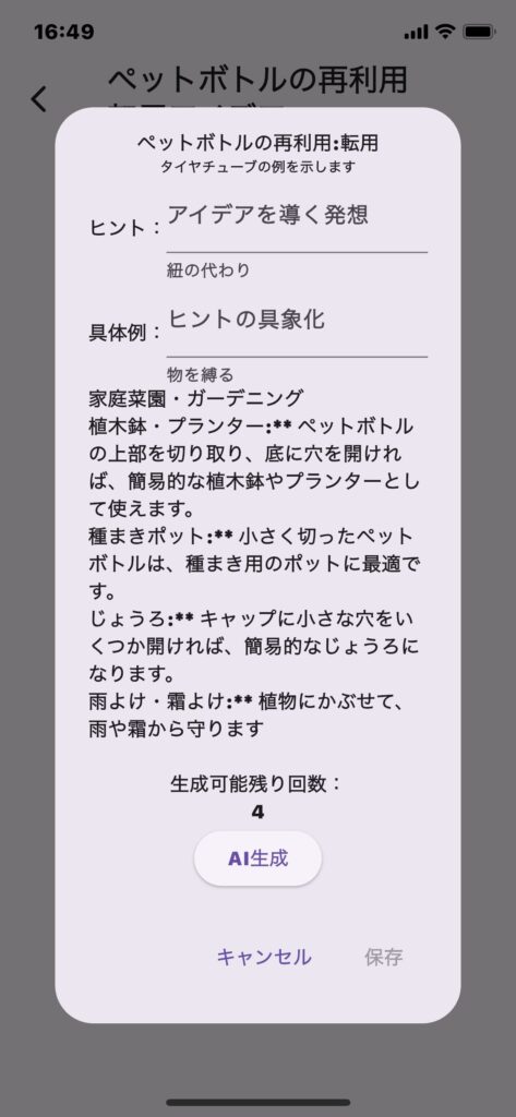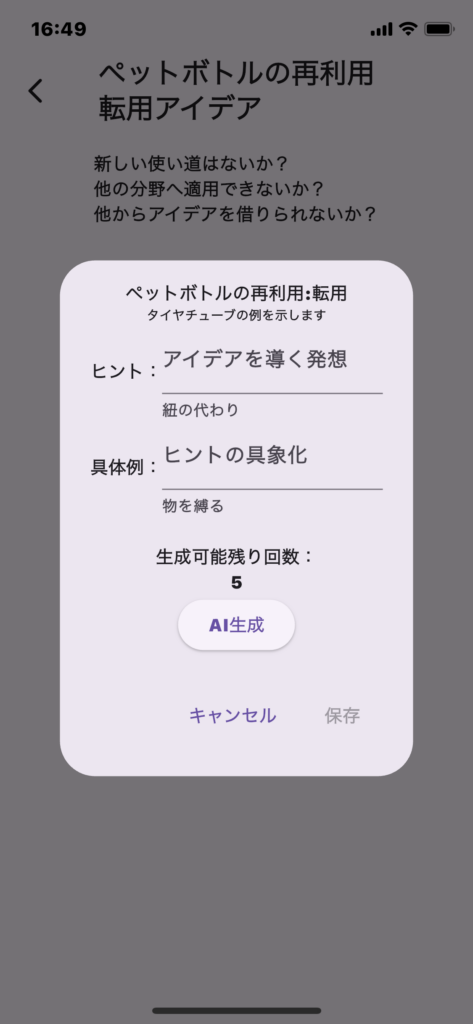 このポケットOhNineの魅力はAIによるアイデア生成機能により発想の幅を拡げられる点です。アイデアに困ったらAIの助けを借りることができます。